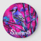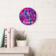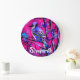 Reloj Redondo Grande Blue Jay Bird Tree Branch Pink Personalized