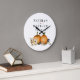 Reloj Redondo Grande Boda de Otoño Botánico Rústico con Calabaza
