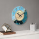 Reloj Redondo Grande Bodas de plata con mármol turquesa y brillo dorado