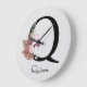 Reloj Redondo Grande Boho Floral Rosa Girly Inicial Q Monograma