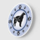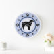 Los propietarios de Borzoi y los amantes del perro disfrutarán de este moderno y divertido diseño con una silueta de Borzoi y huellas de pata que representan los números del reloj, con un fondo azul y un anillo azul oscuro.