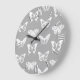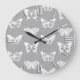 Reloj Redondo Grande Bosquejo de la mariposa, gris de plata y blanco