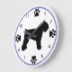 Reloj de amante de los perros con la silueta de un Bouvier des Flandres, con huellas de pata que marcan los números de cuarto de hora.