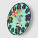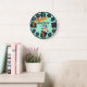 Agrega un nombre y título a este reloj de pared con tema de viaje espacial para niños o niñas. Cuenta con números divertidos con alienígenas, cohetes, astronautas y planetas.