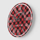 Reloj Redondo Grande Búfalo Rojo Y Negro Tocado Numérico Romano Rústico
