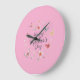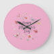 Happy Mother's Day large wall clock with pink floral and butterfly pattern on a plain pink background.