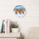 Reloj Redondo Grande Caballos De Cuero De Cuello En Nieve