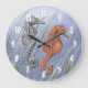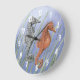Los encantadores caballos del mar flotan durante todo el día en este reloj azul océano con números blancos que se pueden eliminar si se desea.
