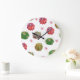 Reloj Redondo Grande Cactus Floral: fondo acuarela
