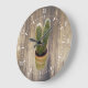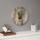 Get that modern Scandinavian style in your home with this adorable and cute cactus in a pot over a light wooden planks background with white roman numerals acrylic wall clock.