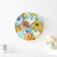 Reloj Redondo Grande Calabazas, girasoles, ilustracion acuarela