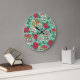 Reloj Redondo Grande Calavera y flores mexicanas, sin costura.