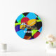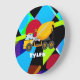 Reloj Redondo Grande Camión amarillo, formas geométricas nombre del niñ