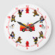 Reloj Redondo Grande Camión de bomberos con bomberos ocupados