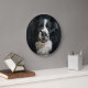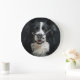 Reloj de pared de acrílico con un hermoso border collie negro y blanco.