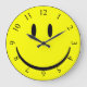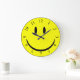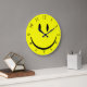 Reloj de pared acrílico redondo de 10.75" con una imagen de una gran cara feliz amarilla, un producto básico de los 70. Vea la colección Clock de Disco 70 en DECOR | Sección Relojes.