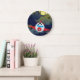 Reloj Redondo Grande Cartoon Red Airplane Flying In Night Sky