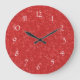 A pretty clock which features a cayenne red, mottled pattern. Numerals are in a white font style. Cute and colorful clock!