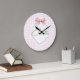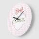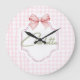 Reloj Redondo Grande Charlotte Personalizado Lazo Rosa y Estampado Ging