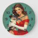 Reloj Redondo Grande Chica de glamour con arte digital de perro