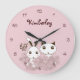 Reloj Redondo Grande Chica rosa BFF Personalizado dulce Kitten y Bunny