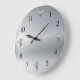 Este reloj para quiroprácticos presenta un aspecto metálico emblema de Ángel quiropráctico a las 12, 3, 6 y 9'h sobre un fondo plateado de aspecto metálico.