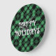 Reloj Redondo Grande Classic Holiday Green Checkered Pattern Custom