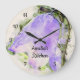 Un hermoso reloj de cocina personalizado con una hermosa flor de arenilla escocesa de color agua.