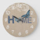 Las letras de cuadros con el corazón floral azul y blanco resaltan el hogar en este diseño de estilo rústico de bonito sobre un fondo rústico de lino efecto burregal. Se agregaron detalles de una mariposa azul y un patrón de desplazamiento floral blanco. Diseñado por Lark Designs