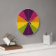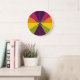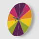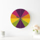 Una cara de reloj dividida en segmentos de 12 x 30 grados cada uno dividido con una línea blanca y en una paleta de 5 colores con segmentos adyacentes en la parte superior e inferior utilizando el mismo color, creando simetría y añadiendo énfasis a las horas y media hora, con un aspecto más bien como un gráfico circular.