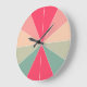 Una cara de reloj dividida en segmentos de 12 x 30 grados, cada uno dividido con una línea blanca y en una paleta de 5 colores con segmentos adyacentes en la parte superior e inferior, con el mismo color, creando simetría y añadiendo énfasis a las horas y media hora, con un aspecto más bien de gráfico circular.