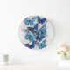 Reloj Redondo Grande Composición de las mariposas blancas y azules