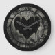 Este reloj gótico tiene un diseño de corazón y calaveras en un esquema de color negro y gris.