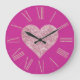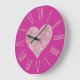 Reloj Redondo Grande Corazón Purpurina rosado en Fuchsia