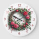 Reloj Redondo Grande Corona de rosas con corazones rojos