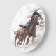 Un caballo y un jinete cortando una ternera en un concurso, con un efecto de pintura digital, en un reloj con números romanos blancos sombreados.