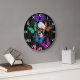 Reloj Redondo Grande Cráneo de la fantasía y mariposas coloreadas