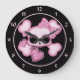 Calavera rosa y huesos cruzados con polka salpicada de arco y corazones.