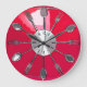 ¡Es hora de comer! Una cara de reloj roja y rosa hecha de cucharas y tenedores. ¡Qué genial es eso para un reloj de cocina increíble! Ver su imagen de hermana azul 'Cutlery O'clock'.