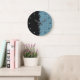 Reloj de pared personalizado para geeks informáticos con cuadrículas de píxeles azules y marcadores de hora de píxeles perdidos. El fondo negro se puede cambiar a cualquier otro color.