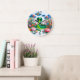 Gran serpiente verde rodeada de peonías y neblinas auspiciosas al estilo de Origami (modelo n°4). Diseño en un gran reloj de pared redonda con números de estilo joven. Tarjeta de felicitación coincidente, postal de vacaciones, pegatina pronto. Perfecto para el Año Nuevo Chino de la Serpiente 2025 o cumpleaños (personas nacidas en el año de las serpientes).
