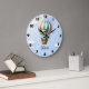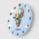 Reloj Redondo Grande Cute Dino Verde Vuela en un Globo Aerostático