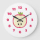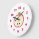 Reloj grande, cómodo y elegante, con una adorable manzana sonriente kawaii enmarcada por números rojos brillantes en un estilo informal y moderno. Este dulce diseño es perfecto para añadir un estilo divertido a las habitaciones de los niños y los niños y un excelente regalo para los amantes de la comida y la fruta.