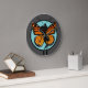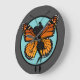 Cute Monarch Butterfly lady illustration large round wall clock. Background color can be customized.