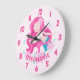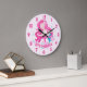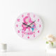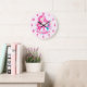 Reloj grande de pared de fantasía para niñas de cabello rosa de sirena. Este diseño presenta una hermosa sirena del océano rodeada de flores. Reloj de pared mágico de fantasía pastel rosa para niñas. Personalice este diseño personalizado con su propio nombre o texto.