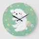 Reloj Redondo Grande Cute Puppy with Bubbles and Flowers