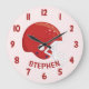 Cute Red Boys Casco de Fútbol para Pared de Dormitorio Reloj Grande. Personalice este diseño personalizado con su propio nombre o texto.