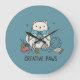Add a touch of whimsical charm to your home with this adorable wall clock featuring a happy white cat engrossed in knitting. Surrounded by balls of blue yarn, knitting needles, and art supplies, this design is perfect for any cat lover or crafting enthusiast. The playful illustration on a calming blue background brings a creative and cozy vibe to any room, making it a delightful accent piece for your decor. This unique piece celebrates the joy of hobbies and the simple pleasures of life, bringing a smile to your face every time you check the hour.