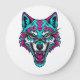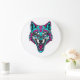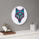 Reloj Redondo Grande Cyberpunk Neon Wolf - Synthwave Robotic Animal
