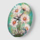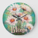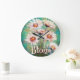 Reloj Redondo Grande Daisies Impressionistic Floral Teal Personalized